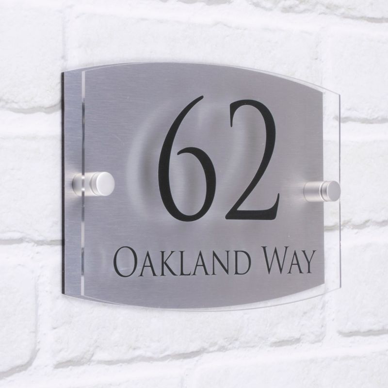 The stunnung looking Oakland acrylic house sign has a 5mm acrylic front plate and a 3mm brushed aluminium composite back plate. Satin chrome standoff fixings complete the look of this stunning sign. Choose from a wide range of font styles, text colours to create your personalised acrylic house sign. The text is printed using specialist UV inks, which bond to the acrylic giving it a vibrant and tough finish. Your sign comes complete with screws, raw plugs, pre drilled holes and easy to follow fitting instructions.