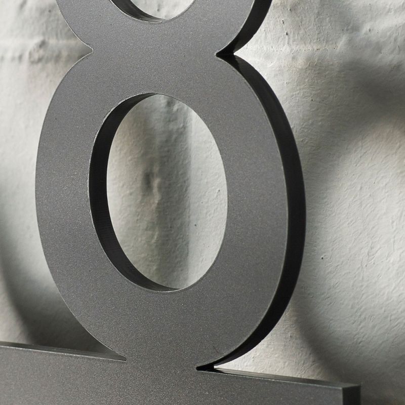 This contemporary floating house sign number is produced from 5mm matt acrylic & has hidden standoff fixings on the rear which allow the design to appear to float off the wall. Available in a stunning matt dark grey acrylic. The text is printed using specialist UV inks, which bond to the acrylic giving it a vibrant and tough finish. Actual number size is 16cm. Other colours available on request.